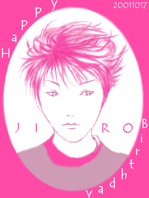 □ハピバ。 ・・やっとマトモなJIROさんを描いた気が・・(爆) シンプル&ポップを目指してみました。 top絵になってたんですが、 みょーにぴんくぴんくしてて、 みょーにめるへんちっくで、 なんかうちのサイトじゃないみたいでした(笑) 29才オメデトウ、兄さん